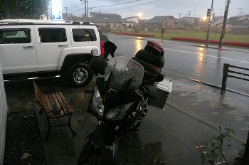 パラパラと無情の雨はやみません。 前室内に調理関係のBOXを運び入れて朝メシであります。