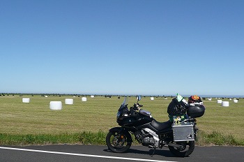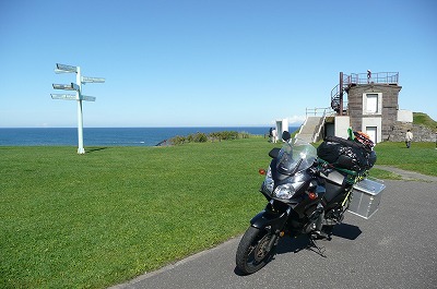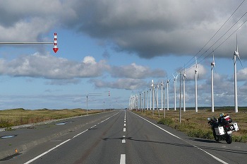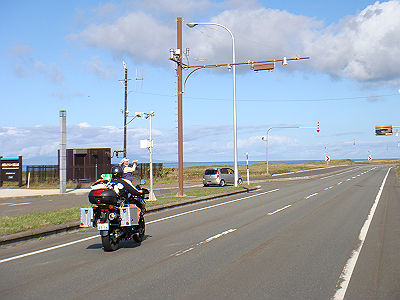 たまには宗谷岬の記念碑にでも行ってみるかと、展望トーチカから坂を下っていると、後ろから怪しげなバイクが2台・・