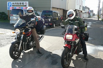 出ました!アホアホコンビだ〜。 で、一緒に宗谷岬で一服です。