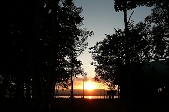 暫くすると日没の時がやって来ました。 湖の向こうの山に落ちてしまうんで湖を赤く染める時間は短いんですけど、何とも美しい風景であります♪