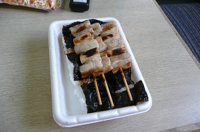 さあて、朝飯です。 取りいだしたるは、昨日セイコマ日高店で仕込んでおいた「やきとり弁当」であります♪