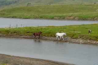 馬に引かせたソリに乗るおっさんが、悠々と浜を疾走していきます。