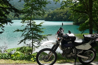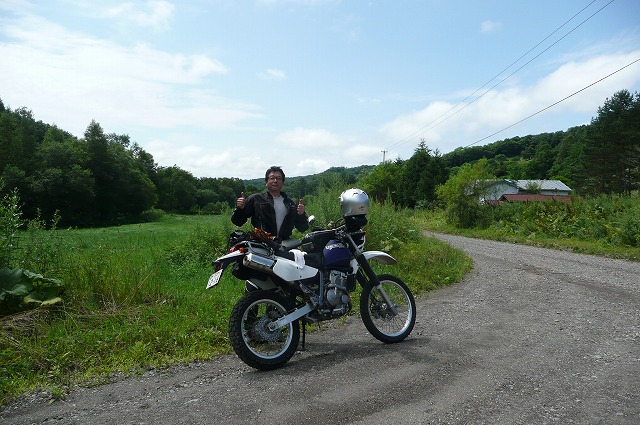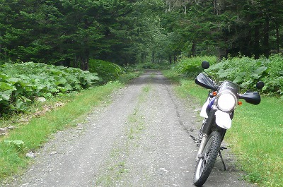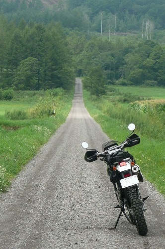 足寄方面に向かっていると、国道脇から気持ちよさそうなダートが伸びていたんで思わず入ってみました。 シートに座って走る分にはかなり飛ばしても問題なさそうだけど、スタンディングで走ると、ステップからのショックが骨折部分にビシビシ伝わってきて、ちょいと堪りまへん状態です。