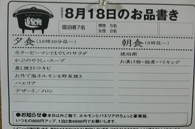 夕食開始時間の18:30。