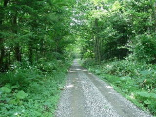 林道の正式名称は布礼別林道。 原始の森入り口の車止めまでの5キロほどの走りやすい林道です。