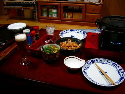 今回も健康料理が並びます。豆腐のピリ辛がビールに合います!