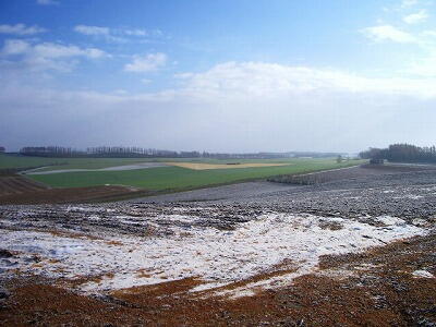 道楽館近所の畑です。 この時期でもまだ畑に緑があります。