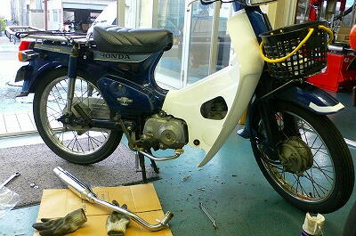 こいつはセンスタ、キックに干渉しない数少ないC90用マフラー