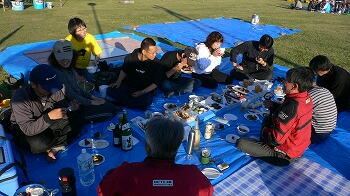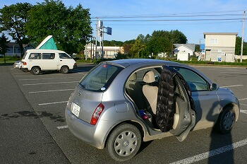 朝起きてみたら、周りはキャンピングカーやワゴンの車中泊組で一杯。