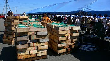 しじみ掴み取り大会の前に、天塩しじみと甘えびの販売がありますが、