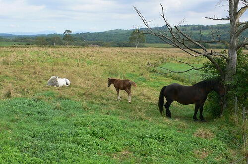 道端に馬の家族がいたので、バイクを停めて一服しながら眺めていました。