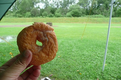 片道2.1キロふらふらと走って、開店早々のセイコマ上士幌店で単3電池と朝メシにしわくちゃドーナツも購入〜♪