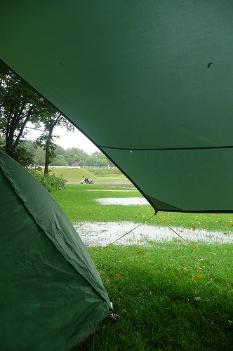 雨もあらかた止んでしまい、テントの周りの湖さえ無ければ何事も無かったかのようで