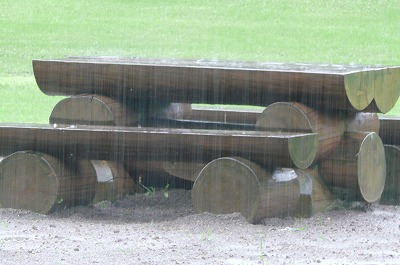 このキャンプ場に来て以来、結構雨が降ってるからでしょうが、十分雨水含んだ大地がキャパ超えてきたようで